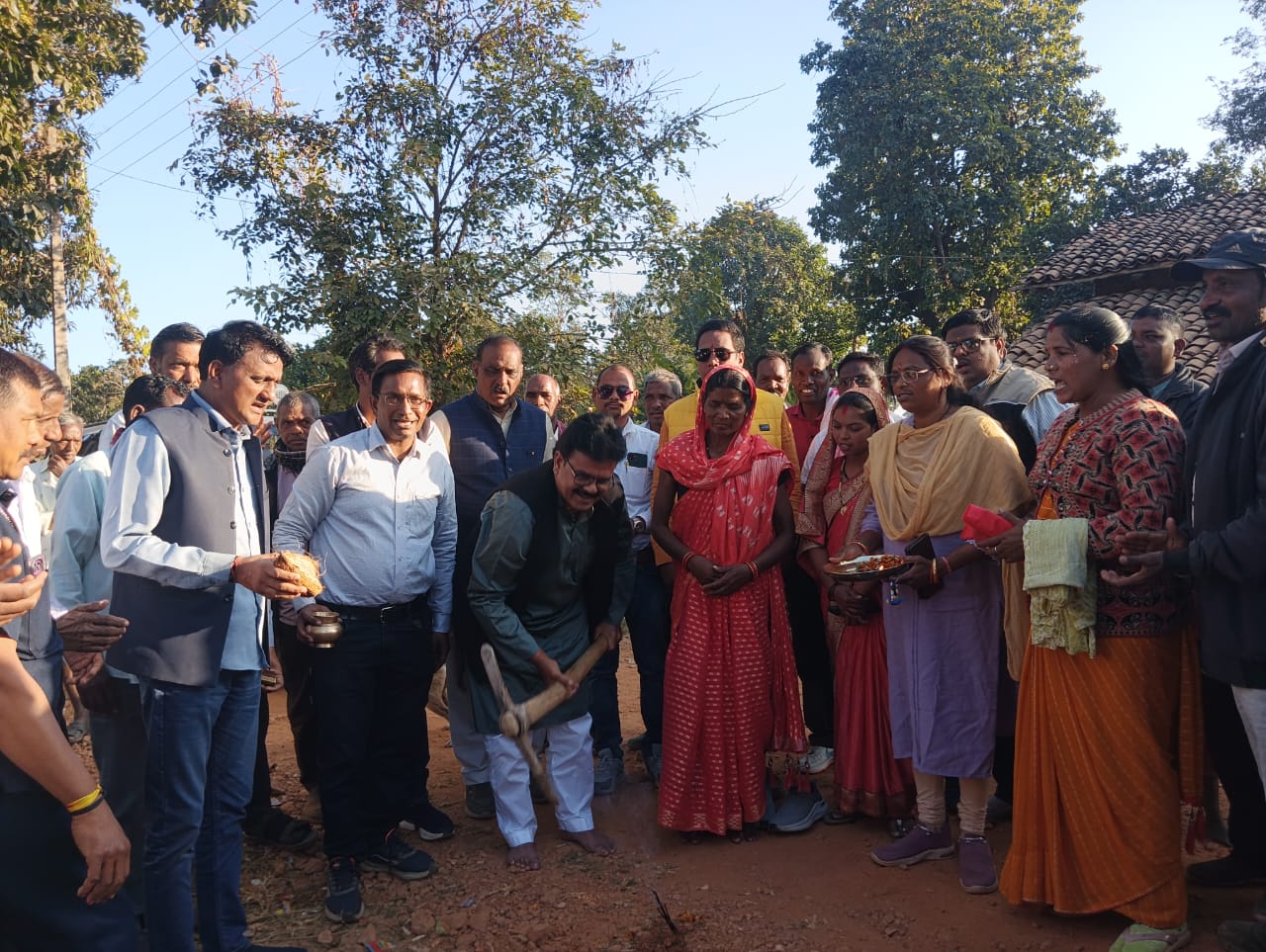 बिलासपुर— जनपद पंचायत कोटा के अंतर्गत ग्राम पंचायत करहीकछार में विकास कार्यों की कड़ी में एक और कदम बढ़ाया गया। कोटा विधायक अटल श्रीवास्तव ने अपने विधायक निधि मद से 5 लाख रुपये की लागत से बनने वाली लगभग 200 मीटर लंबी सीसी रोड का विधिवत भूमि पूजन किया।