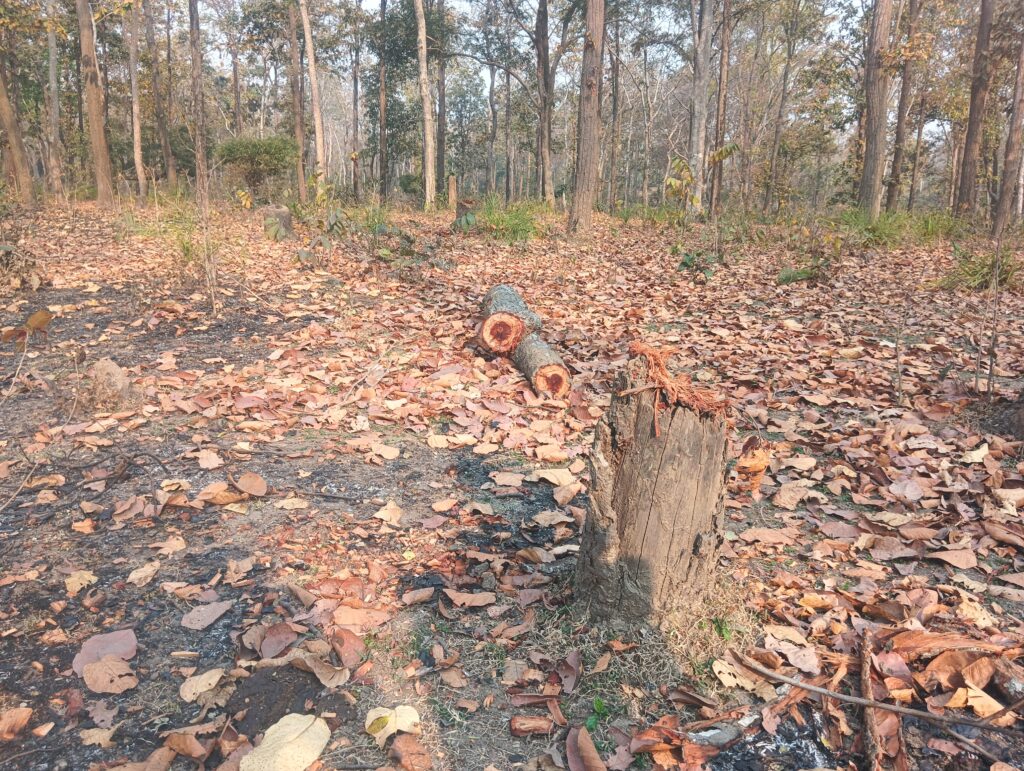 जंगल अंदर चारों तरफ लकड़ी की ठूंठ —-***– क्षेत्र के जंगलों में अवैध कटाई का मामला लगातार सामने आ रहा है। जंगल के अंदर चारों तरफ पेड़ों के कटे हुए ठूंठ दिखाई दे रहे हैं, जिससे साफ जाहिर होता है कि माफियाओं द्वारा बड़े पैमाने पर इमारती लकड़ी की कटाई की गई है। पेड़ों को काटकर जंगल में सिर्फ ठूंठ छोड़ दिए गए हैं, जिससे पूरा जंगल उजड़ता नजर आ रहा है।
