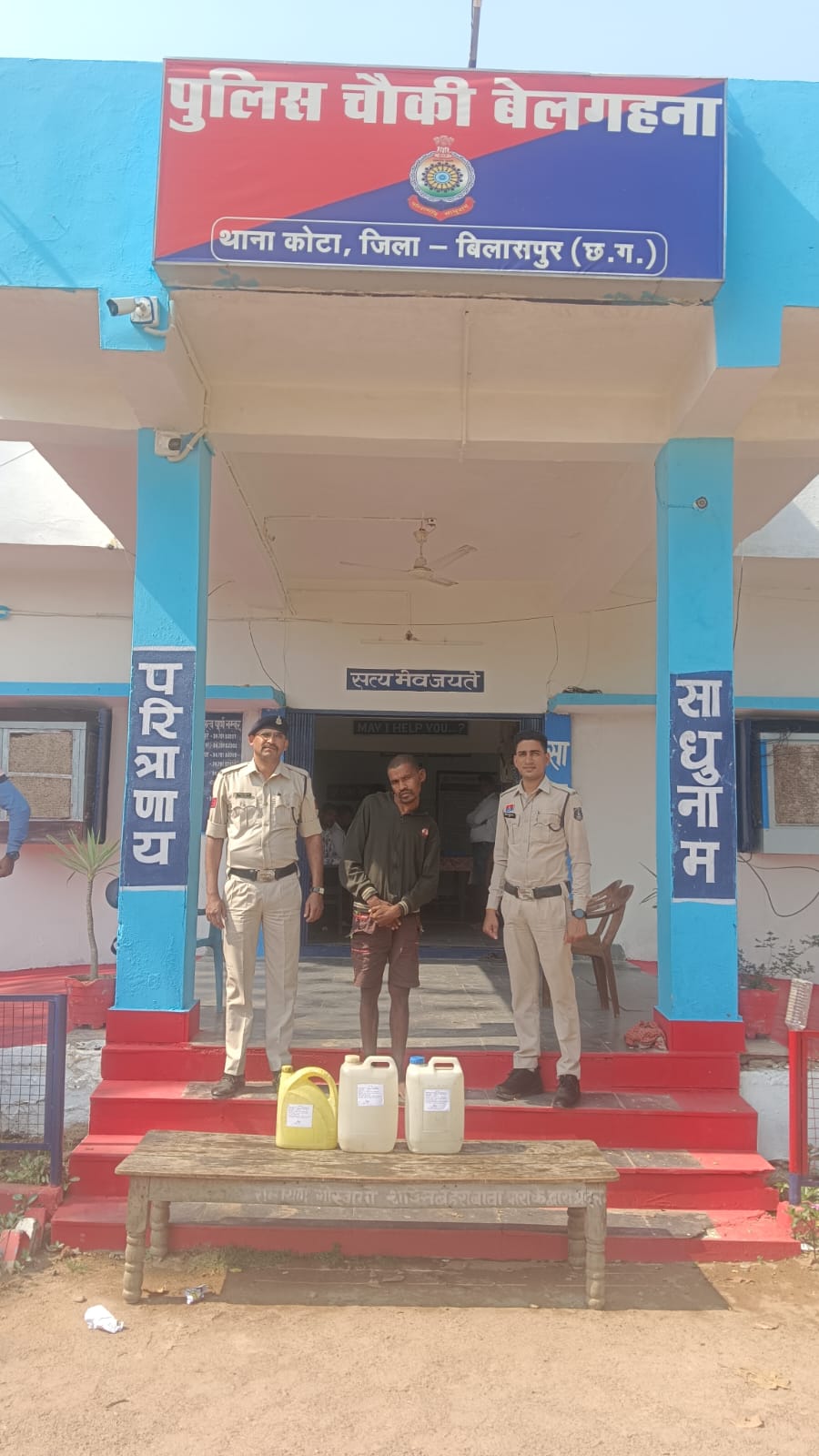 विवरणः- मामले के संक्षिप्त विवरण इस प्रकार है कि चेतना विरुद्ध नशा व प्रहार अभियान के तहत आगामी त्रिस्तरीय पंचायत चुनाव के मद्देनज़र अवैध शराब बिक्री करने वाले के विरुद्ध कार्यवाही हेतु श्रीमान पुलिस अधीक्षक महोदय श्री रजनेश सिंह (भा.पु.से.) द्वारा निर्देशित किया गया है। जिनके निर्देशानुसार श्रीमती अर्चना झा (रा. पु.से.) अतिरिक्त पुलिस अधीक्षक ग्रामीण एवं श्रीमती नुपूर उपाध्याय (रा.पु.से.) अनुविभागीय अधिकारी पुलिस कोटा के मार्गदर्शन में आज दिनांक 19.02.2025 को कार्यवाही करते हुये अवैध महुआ शराब बिक्री करने वाले पर रेड कार्यवाही कर ग्राम मानिकपुर में आरोपी तिरिथ राम टेकाम पिता बालाराम टेकाम उम्र 35 वर्ष साकिन मानिकपुर चौकी बेलगहना जिला बिलासपुर के कब्जे से प्लास्टिक डिब्बा में कुल 23 लीटर महुआ शराब कीमती 4600 रू. को विधिवत जप्त कर आरोपी तिरिथ राम टेकाम के विरूद्ध धारा 34(2) आबकारी एक्ट की कार्यवाही करते हुये आरोपी तिरिथ राम टेकाम को 19.02.2025 को विधिवत गिरफ्तार किया गया आज दिनांक 19.02.2025 को न्यायिक अभिरक्षा में भेजा गया है। उक्त कार्यवाही में चौकी बेलगहना प्रभारी उप भावेश शेंडे, HC 840 अरुण कुमार कमलवंशी आरक्षक ईश्वर नेताम, आर राकेश पोर्ते, महिला आर गोमती पेंन्द्रो की विशेष भूमिका रही।