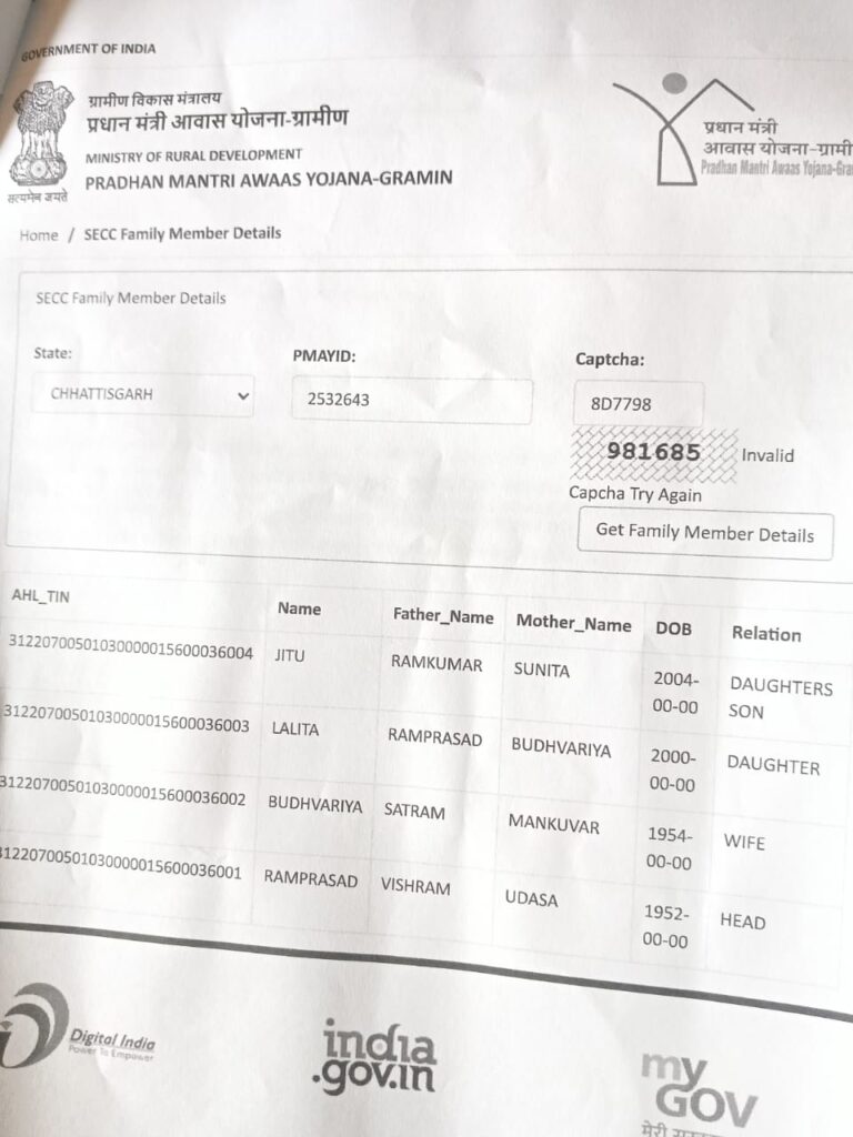 पहली किस्त की राशि का आहरण— रामप्रसाद विश्वकर्मा के नाम से स्वीकृत आवास की पहली किस्त की राशि 40 हजार रूपये को तीसरे व्यक्ति रामप्रसाद यादव के खाते में डाला दिया गया, जिसके रामप्रसाद यादव के द्वारा राशि को आहरण करके खर्च कर दिया गया हैं l