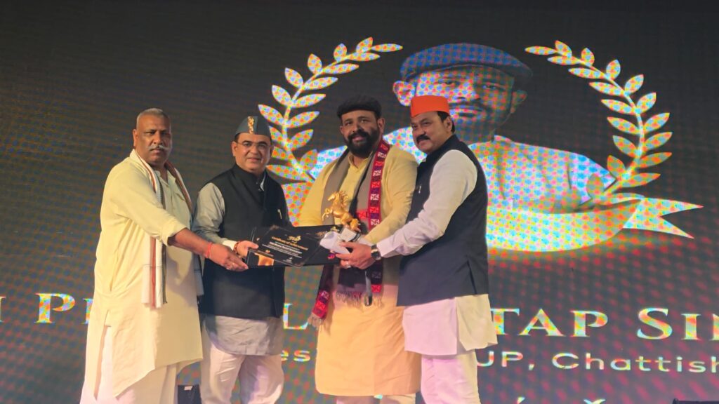 बिलासपुर —- उत्तराखंड में आयोजित राजपूताना बिज़नेस समिट 2025 में छत्तीसगढ़ में घर वापसी अभियान के प्रमुख प्रबल प्रताप सिंह जूदेव को आज का कर्मवीर अवार्ड से सम्मानित किया गया। यह सम्मान उन्हें समाजहित एवं राष्ट्रहित में निरंतर किए जा रहे कार्यों, विशेषकर छत्तीसगढ़ में घर वापसी अभियान कार्यक्रम एवं विभिन्न सामाजिक एवं जनकल्याणकारी पहलों हेतु प्रदान किया गया। यहां पुरस्कार महाराष्ट्र सरकार के कैबिनेट मंत्री जयकुमार रावल एवं बिहार सरकार के कैबिनेट मंत्री राजू सिंह के द्वारा प्रदान किया गया।